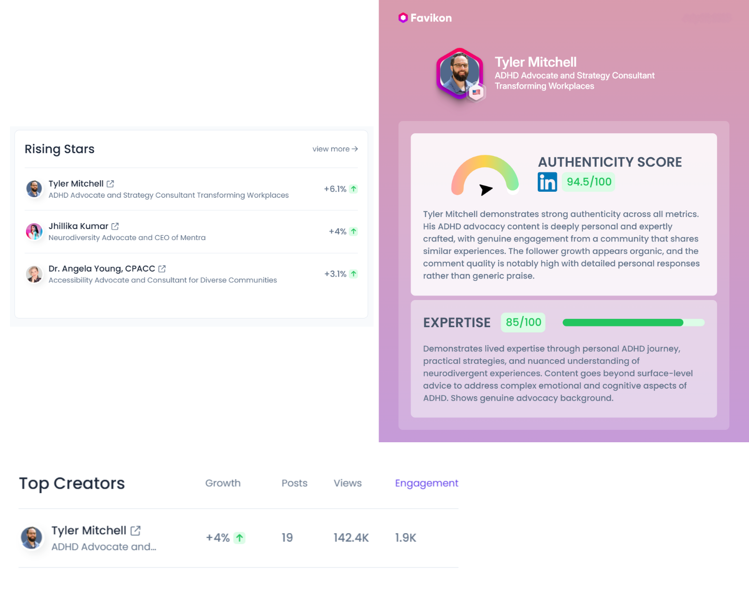 I'm not one to brag (much), but the numbers don't lie. I've been ranked #1 in the US for Neurodiversity content and #1 Rising Creator in my category. My authenticity score is 94.5/100, which either means I'm really good at being myself, or I'm terrible at pretending to be someone else. I'm going with the first one.